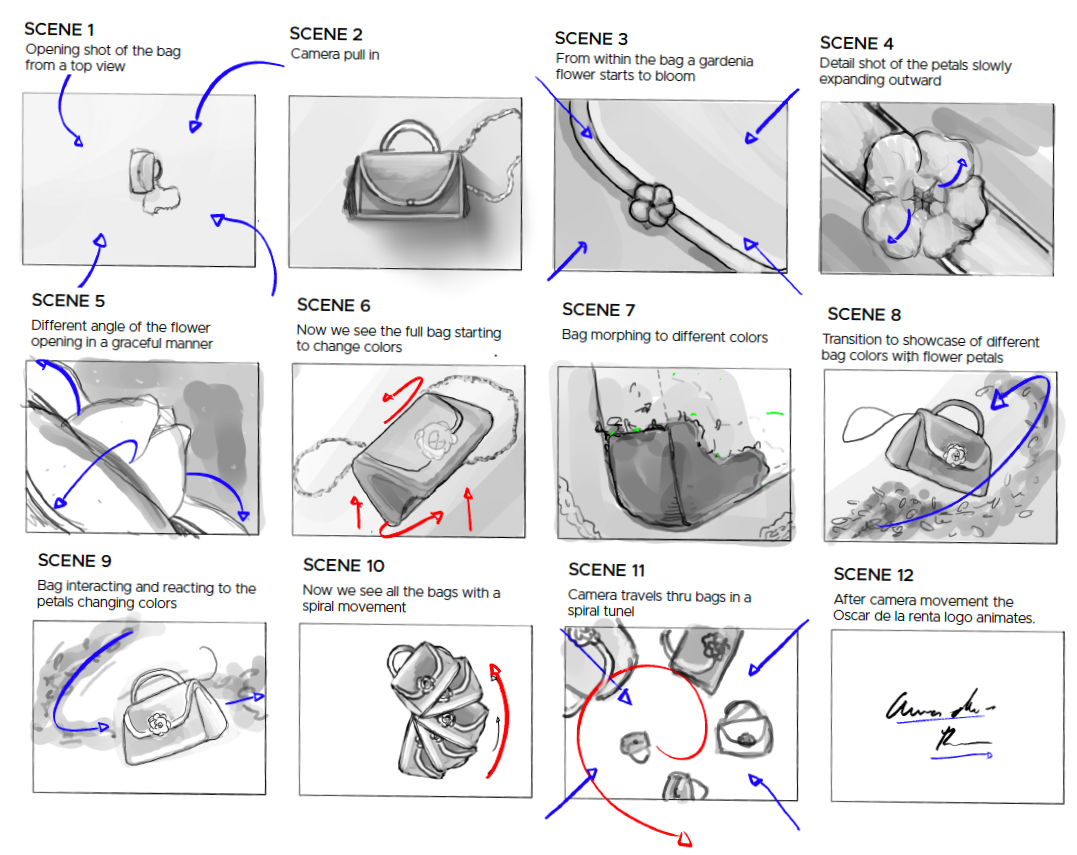 Oscar de la Renta’s floral motifs aren’t decoration. They’re a house code, used for decades to express elegance, femininity, and craft. The Tro bag carries that code in a very specific way: a polished, sculptural silhouette anchored by a gardenia that feels like jewelry. The opportunity was to take that iconic detail and build a digital moment that did more than “show the bag.” Something that deepened the meaning, while still feeling unmistakably Oscar.